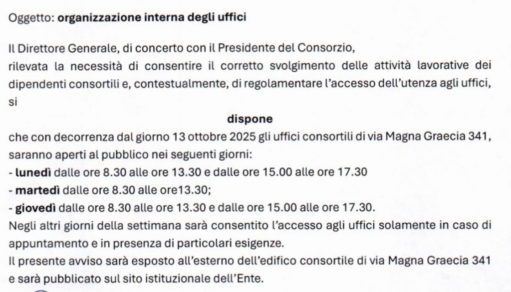 - Organizzazione Interna degli Uffici – Orari – Ottobre 10, 2025